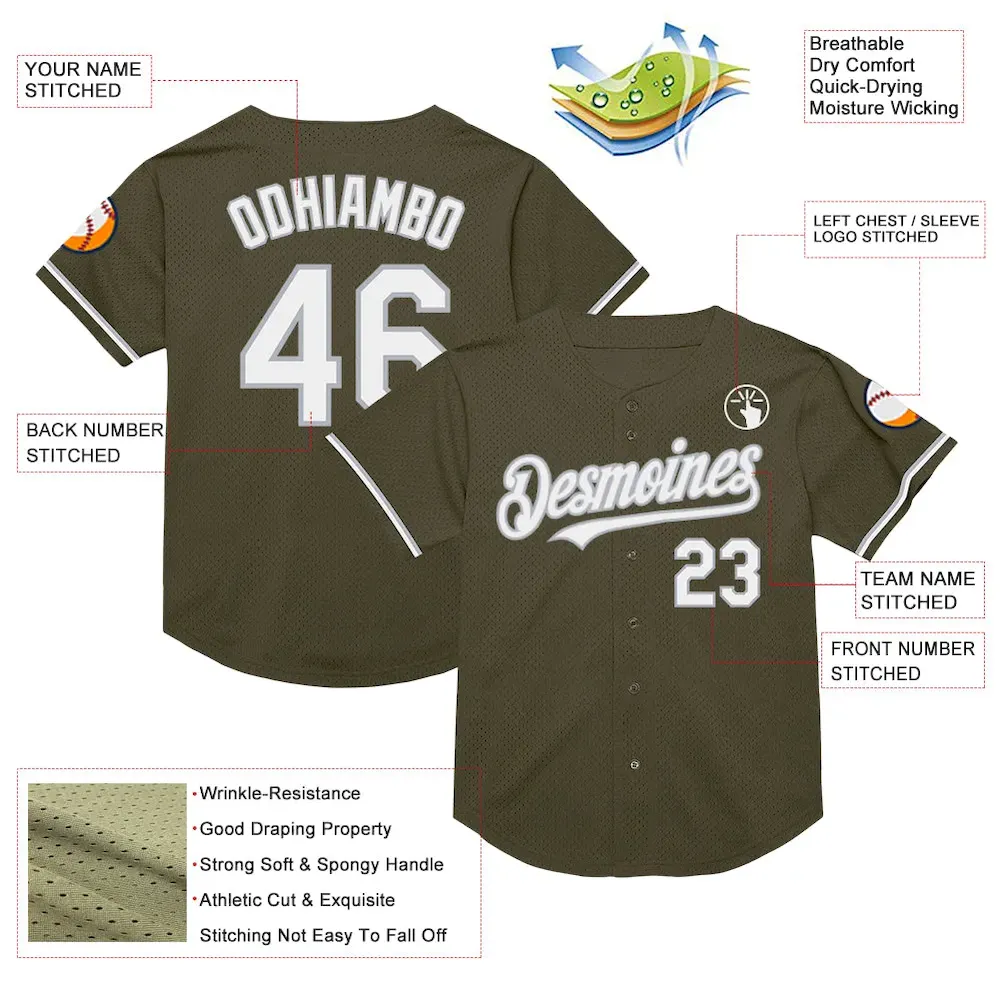 Custom Olive White-Gray Mesh Authentic Throwback Salute To Service Baseball Jersey