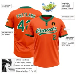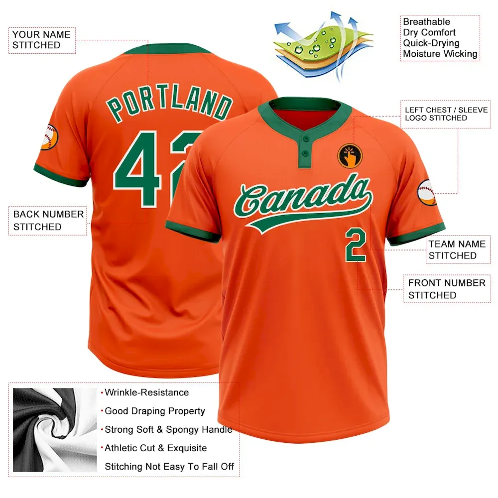 Custom Orange Kelly Green-White Two-Button Unisex Softball Jersey