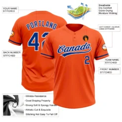 Custom Orange Royal-White Two-Button Unisex Softball Jersey