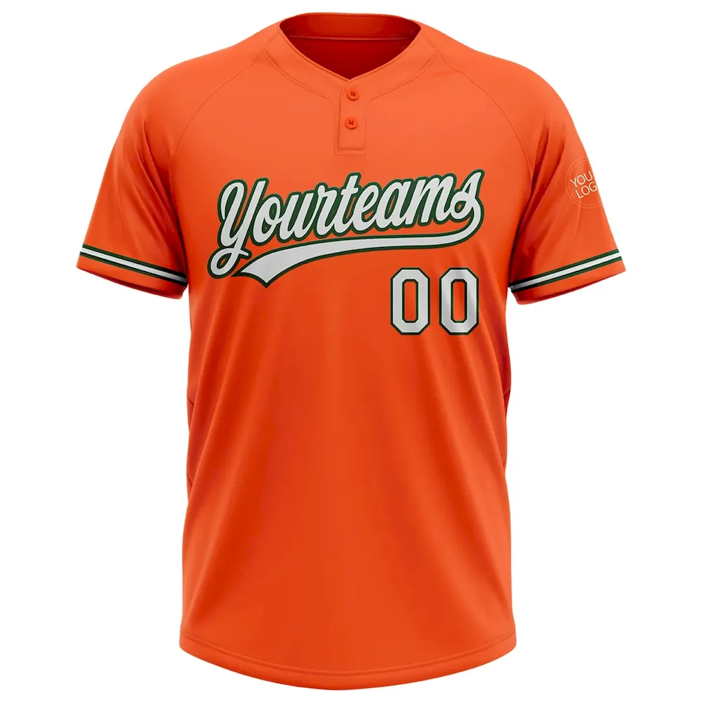 Custom Orange White-Green Two-Button Unisex Softball Jersey