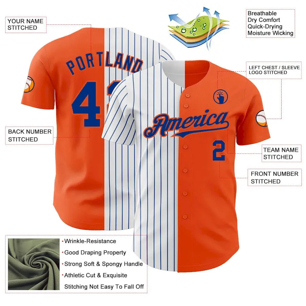 Custom Orange White-Royal Pinstripe Authentic Split Fashion Baseball Jersey