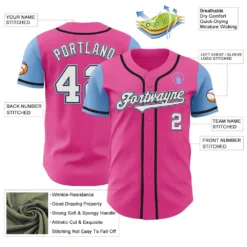 Custom Pink White-Light Blue Authentic Two Tone Baseball Jersey