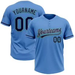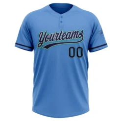 Custom Powder Blue Navy Gray-Teal Two-Button Unisex Softball Jersey