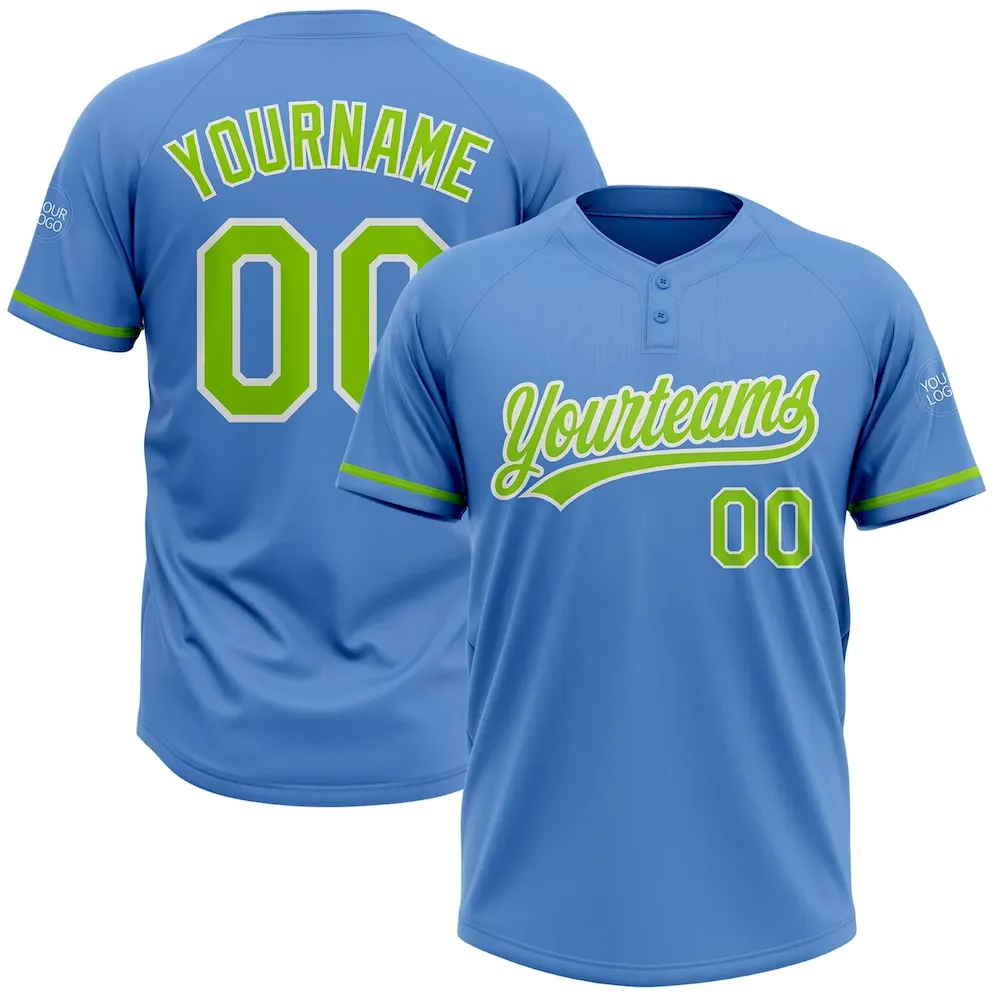 Custom Powder Blue Neon Green-White Two-Button Unisex Softball Jersey