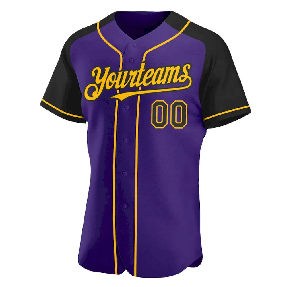 Custom Purple Black-Gold Authentic Raglan Sleeves Baseball Jersey