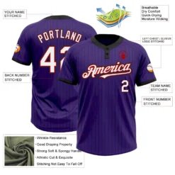 Custom Purple Black Pinstripe White-Red Two-Button Unisex Softball Jersey