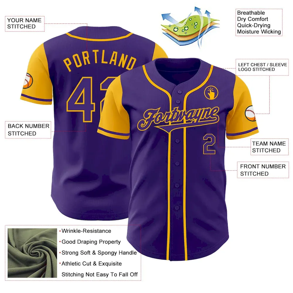 Custom Purple Gold Authentic Two Tone Baseball Jersey