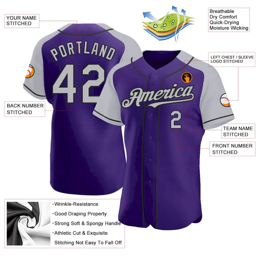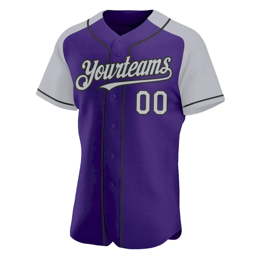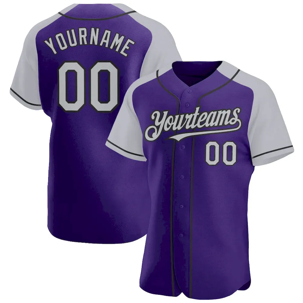 Custom Purple Gray-Black Authentic Raglan Sleeves Baseball Jersey