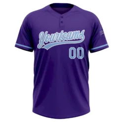 Custom Purple Light Blue-White Two-Button Unisex Softball Jersey