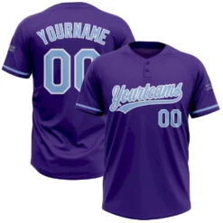 Custom Purple Light Blue-White Two-Button Unisex Softball Jersey