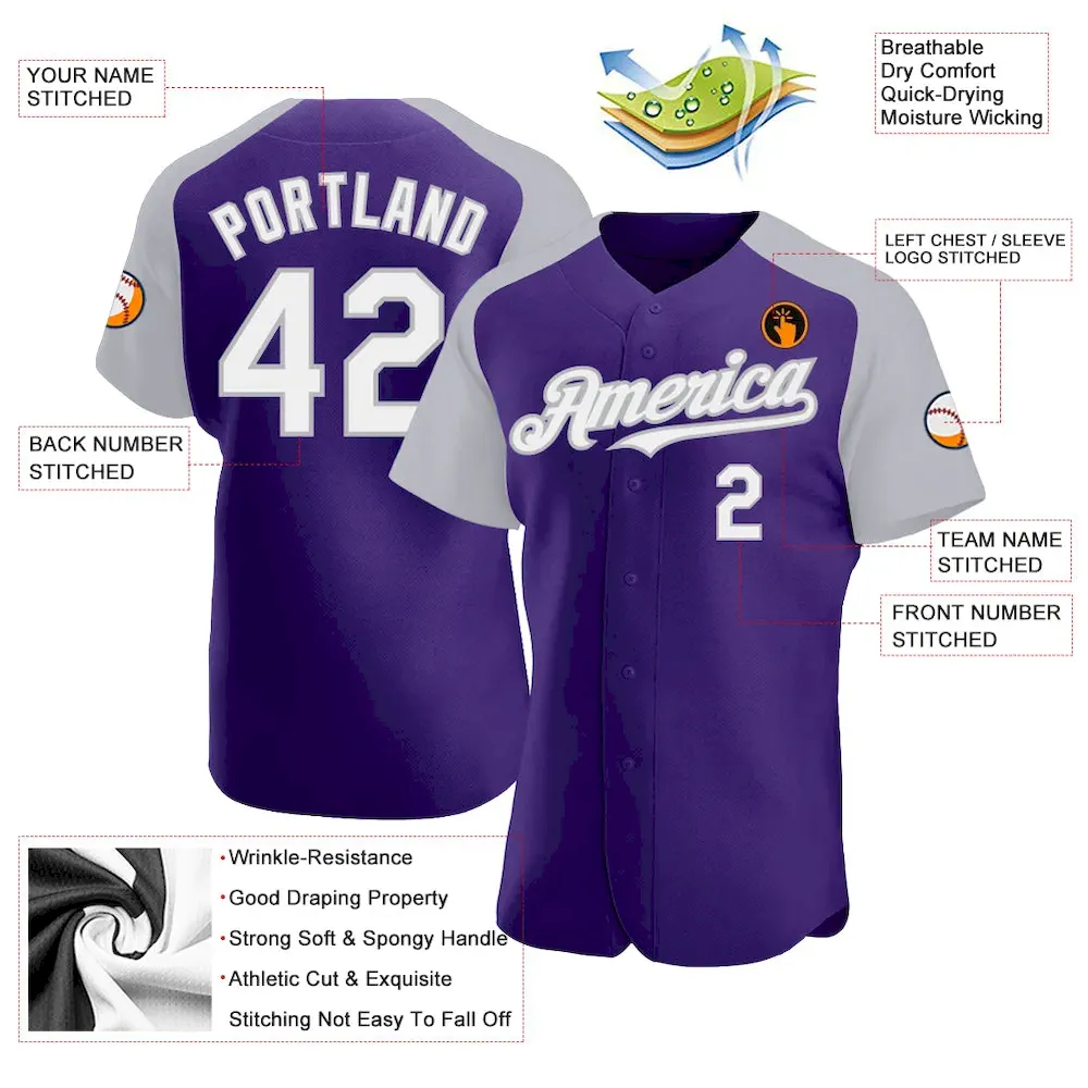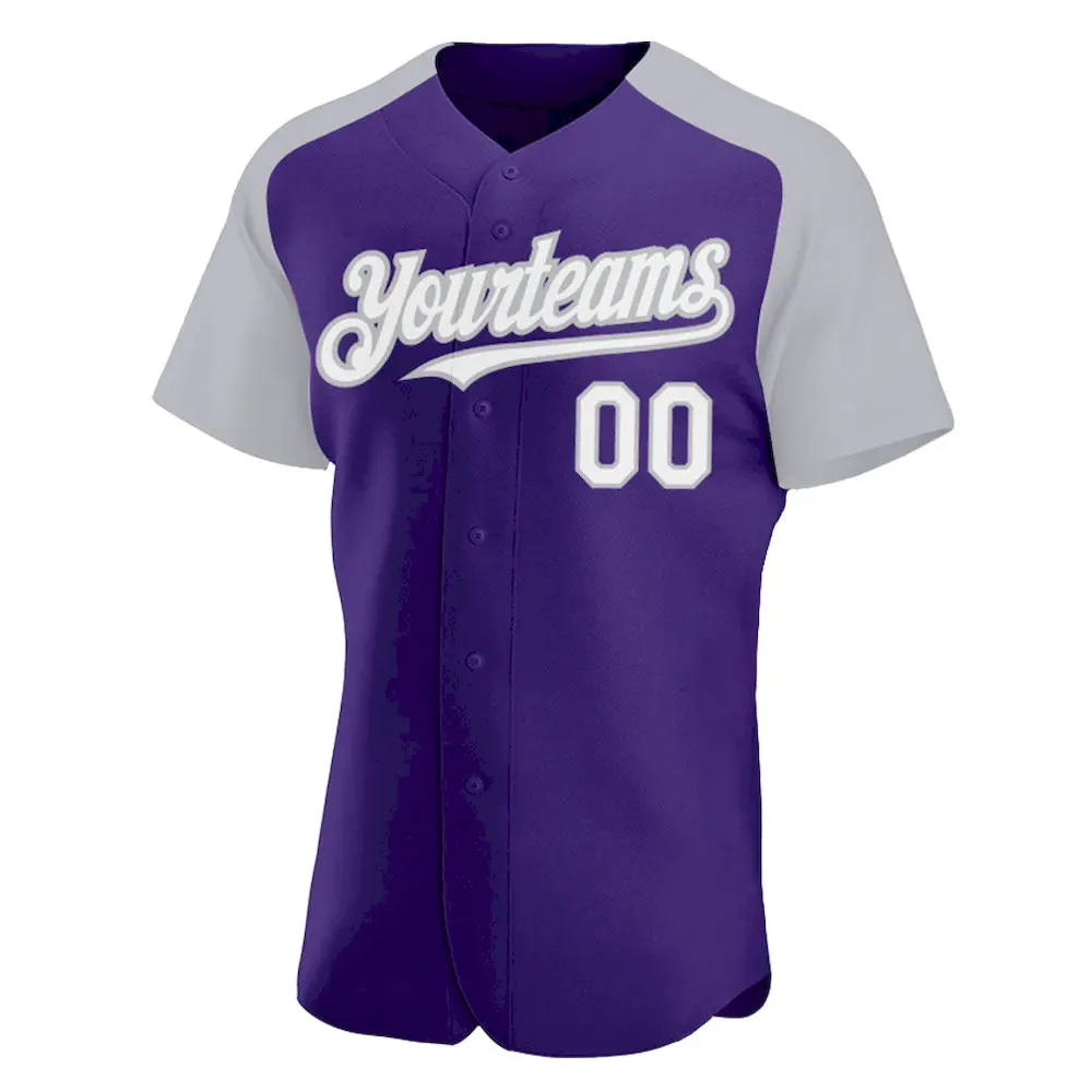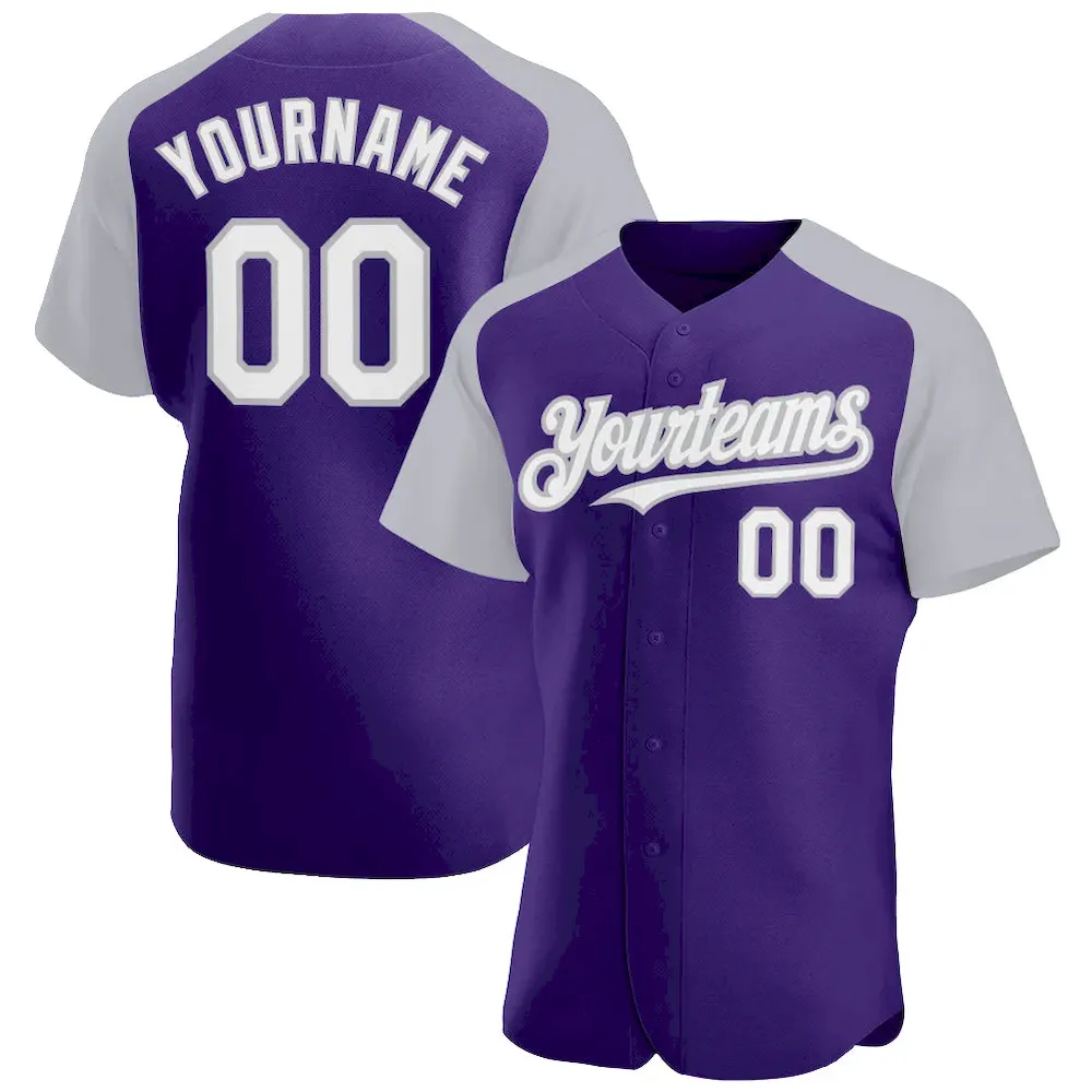 Custom Purple White-Gray Authentic Raglan Sleeves Baseball Jersey