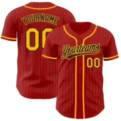 Custom Red Black Pinstripe Gold Authentic Baseball Jersey