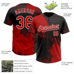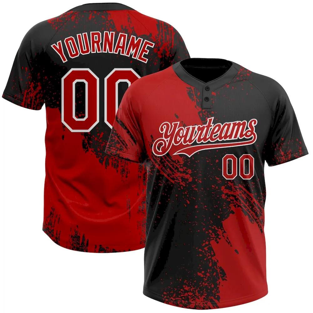 Custom Red Black-White 3D Pattern Abstract Brush Stroke Two-Button Unisex Softball Jersey
