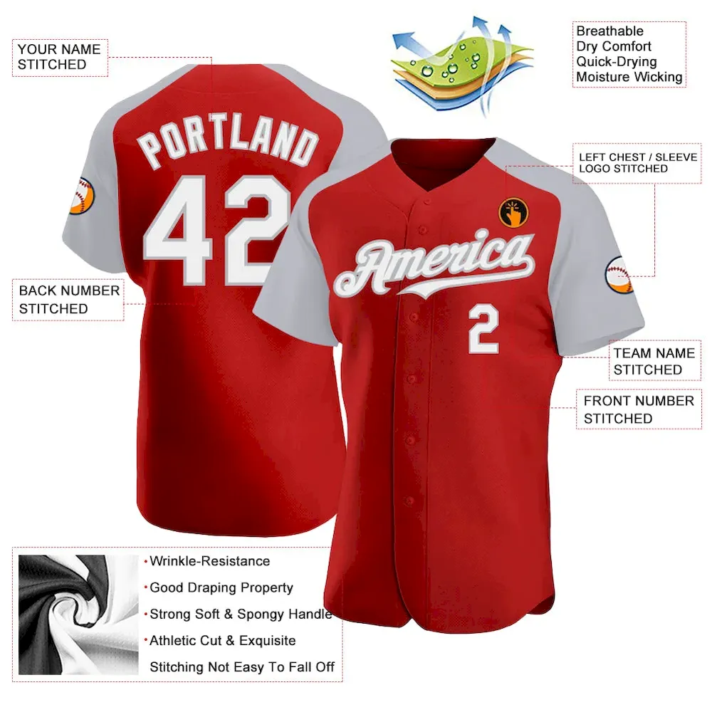 Custom Red White-Gray Authentic Raglan Sleeves Baseball Jersey