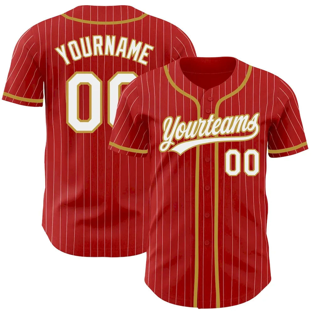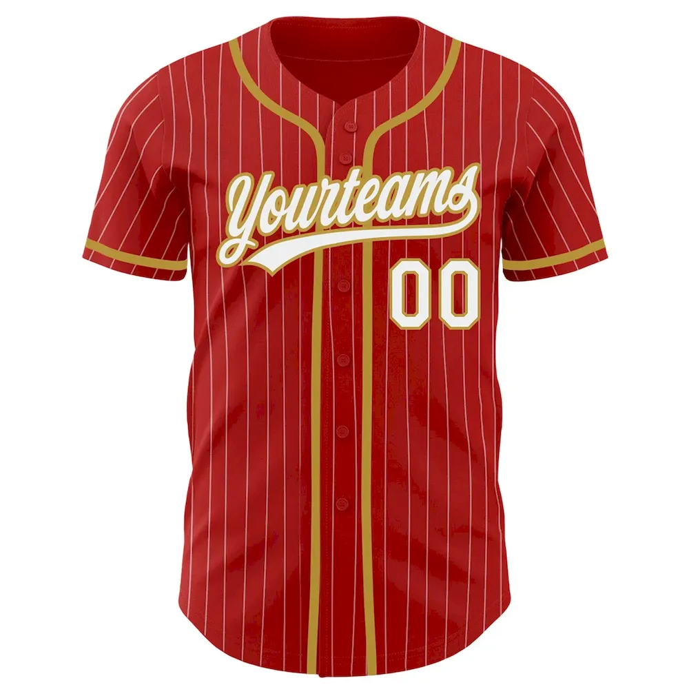 Custom Red White Pinstripe Old Gold Authentic Baseball Jersey