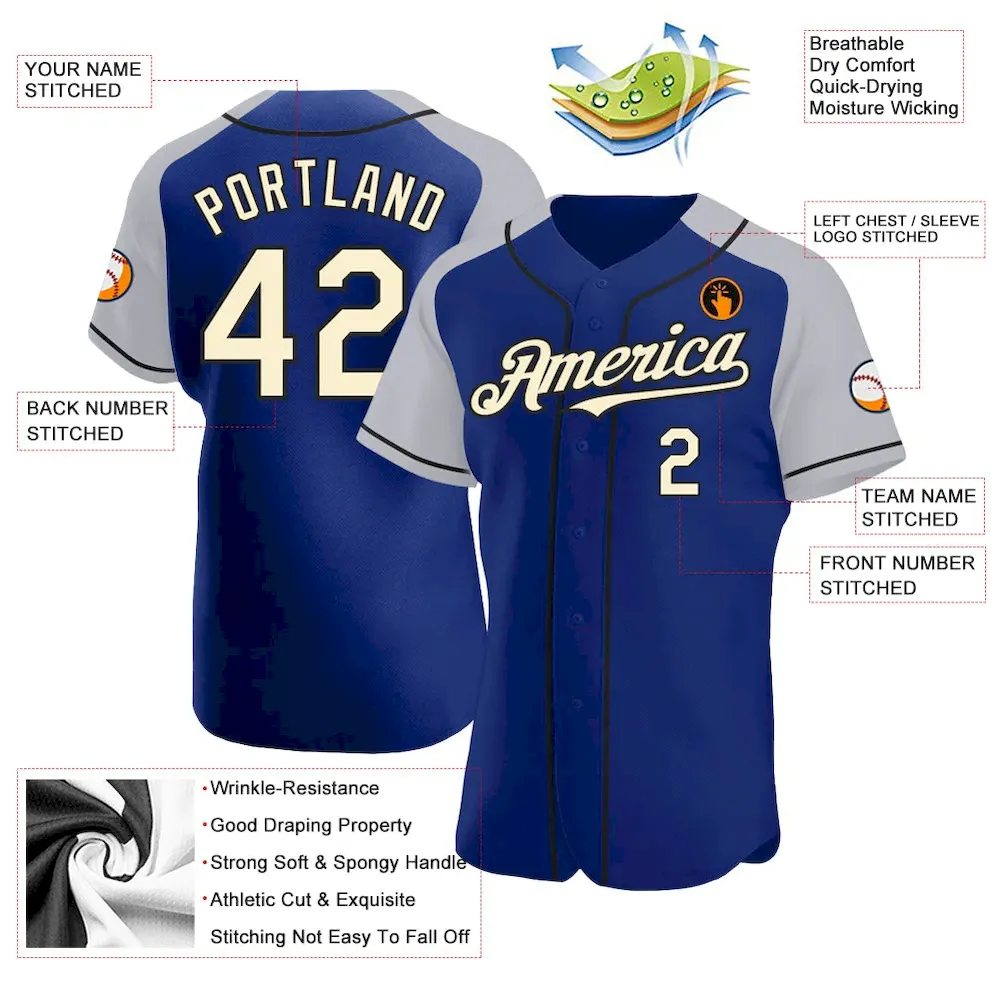 Custom Royal Cream-Black Authentic Raglan Sleeves Baseball Jersey