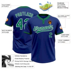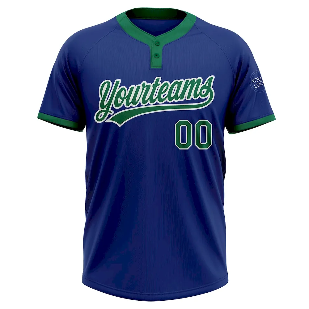 Custom Royal Kelly Green-White Two-Button Unisex Softball Jersey