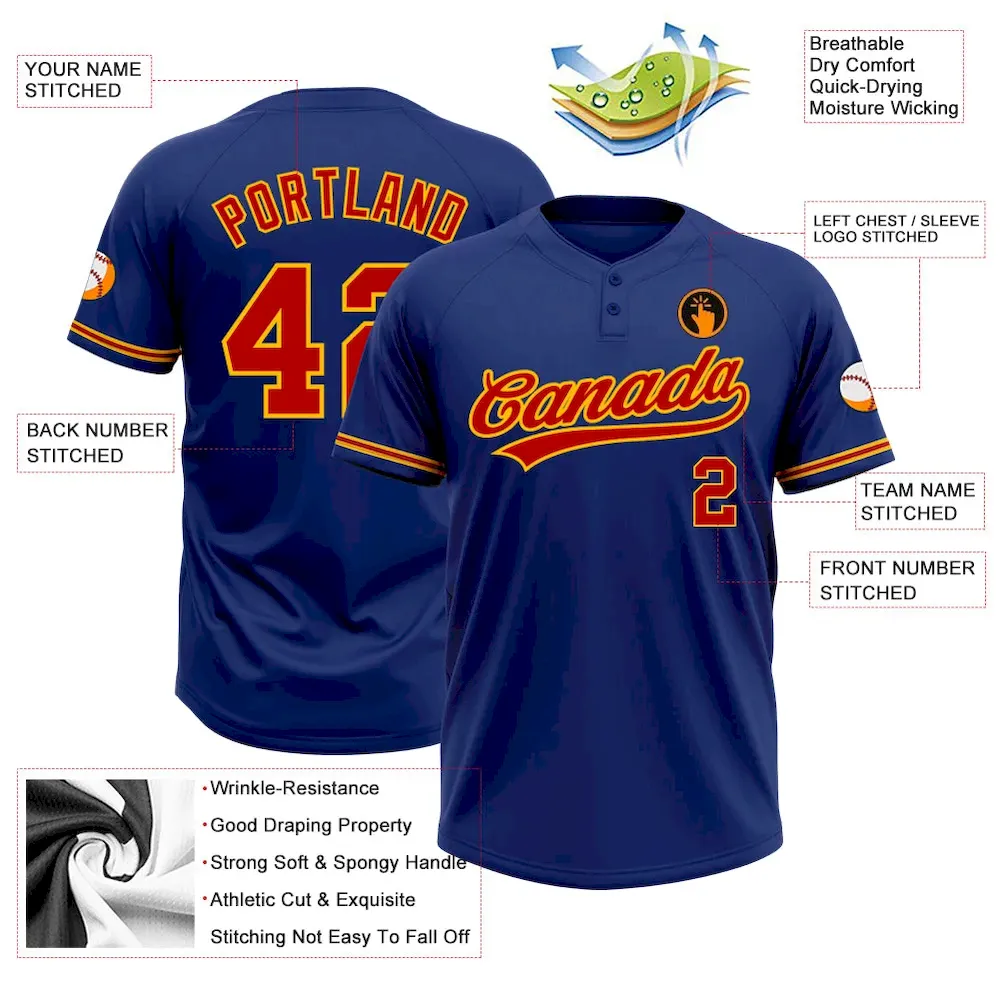 Custom Royal Red-Gold Two-Button Unisex Softball Jersey
