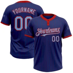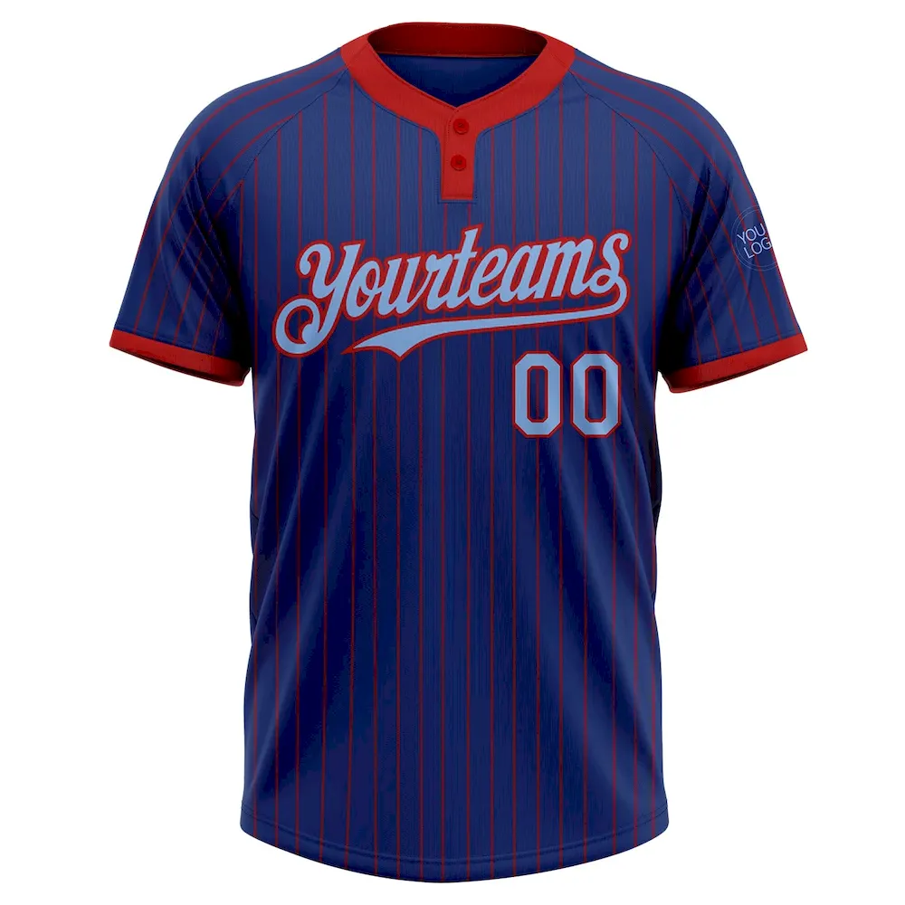 Custom Royal Red Pinstripe Light Blue Two-Button Unisex Softball Jersey