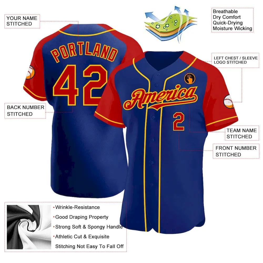 Custom Royal Red-Yellow Authentic Raglan Sleeves Baseball Jersey