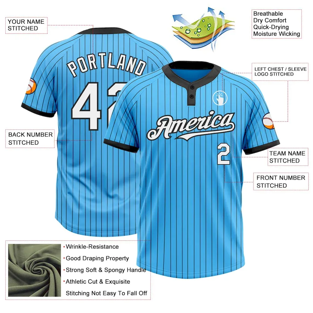 Custom Sky Blue Black Pinstripe White Two-Button Unisex Softball Jersey