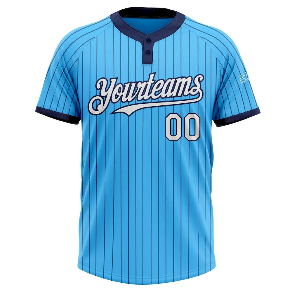 Custom Sky Blue Navy Pinstripe White Two-Button Unisex Softball Jersey
