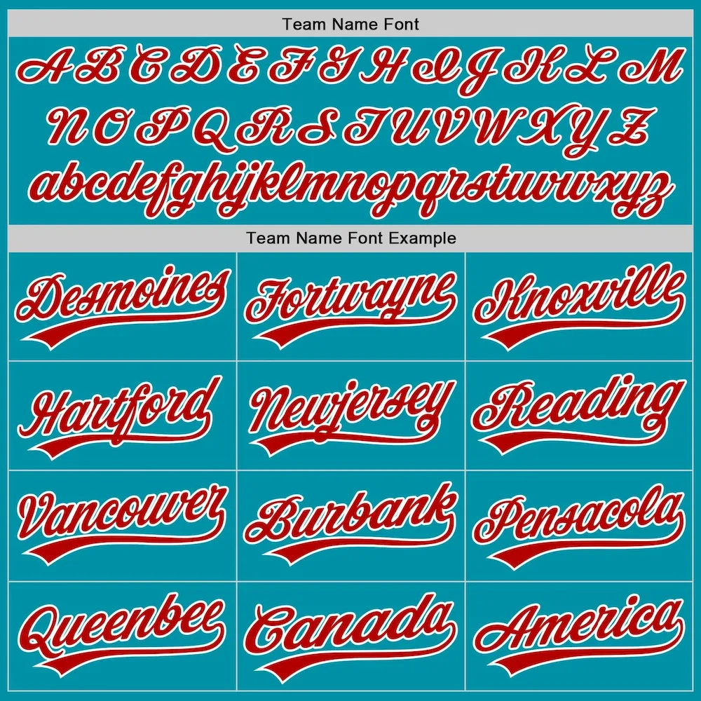 Custom Teal Red-White Authentic Throwback Baseball Jersey
