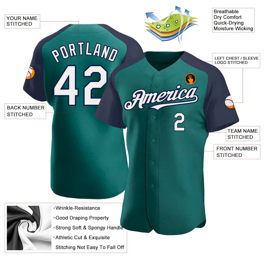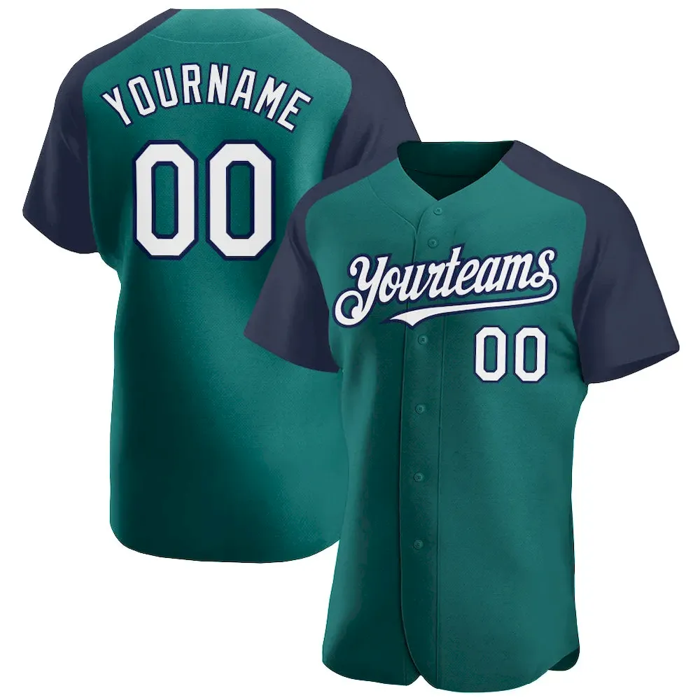 Custom Teal White-Navy Authentic Raglan Sleeves Baseball Jersey
