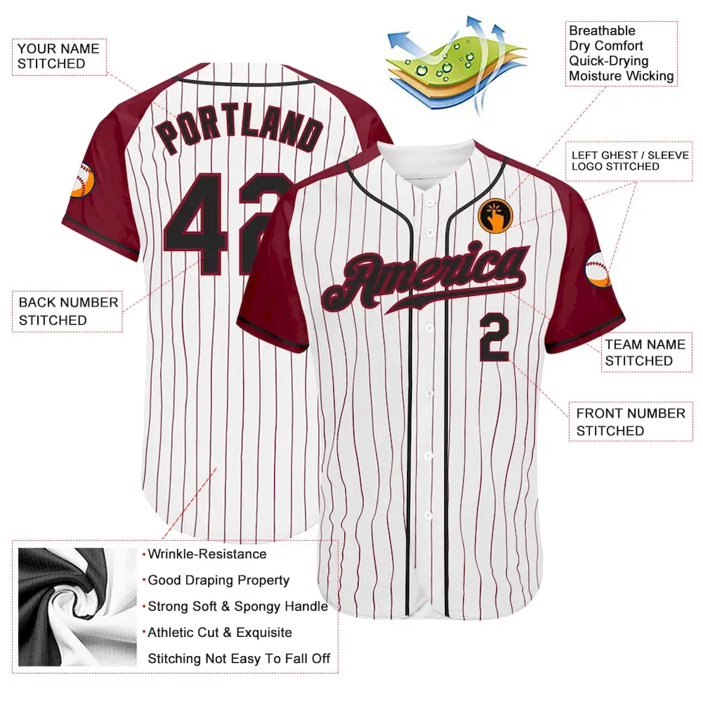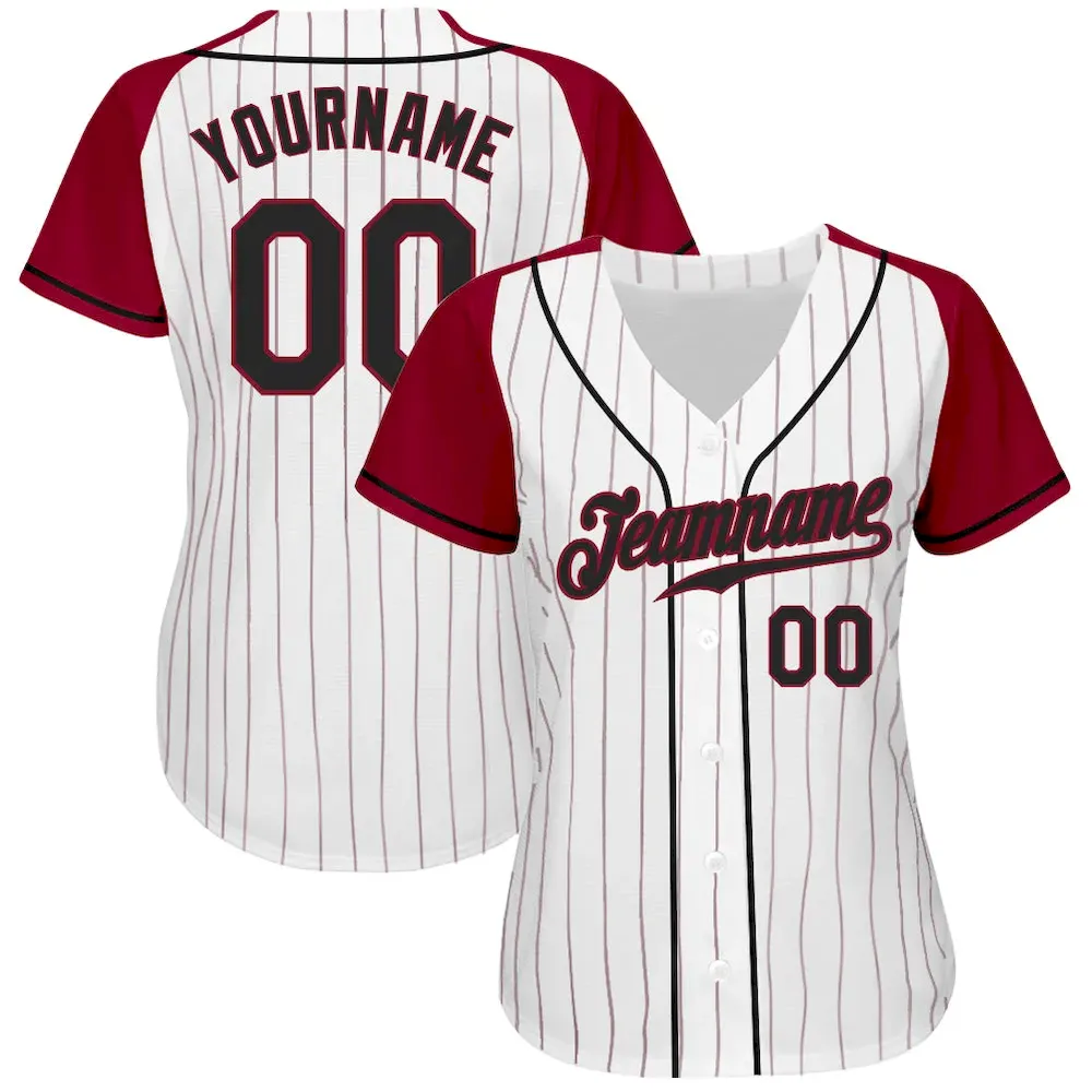 Custom White Crimson Pinstripe Black-Crimson Authentic Raglan Sleeves Baseball Jersey