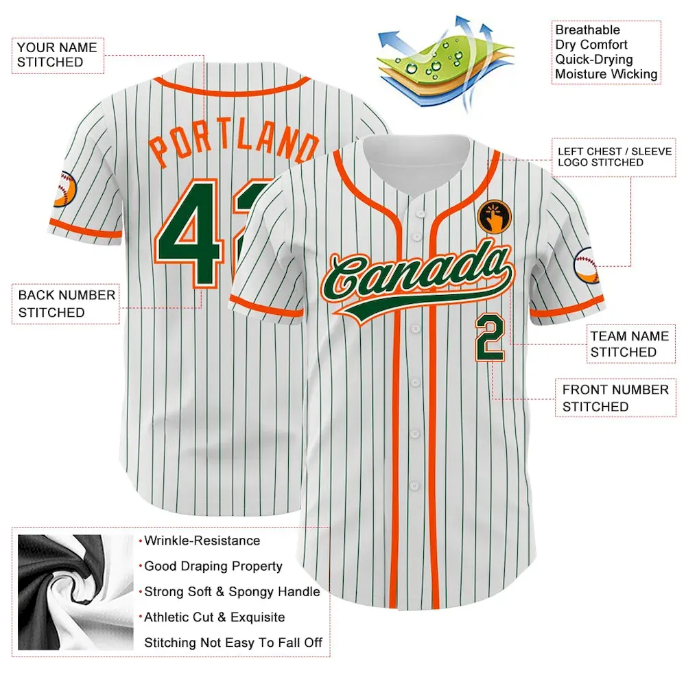 Custom White Green Pinstripe Green-Orange Authentic Baseball Jersey