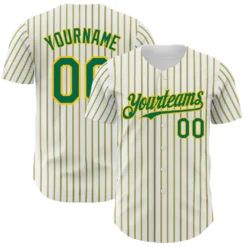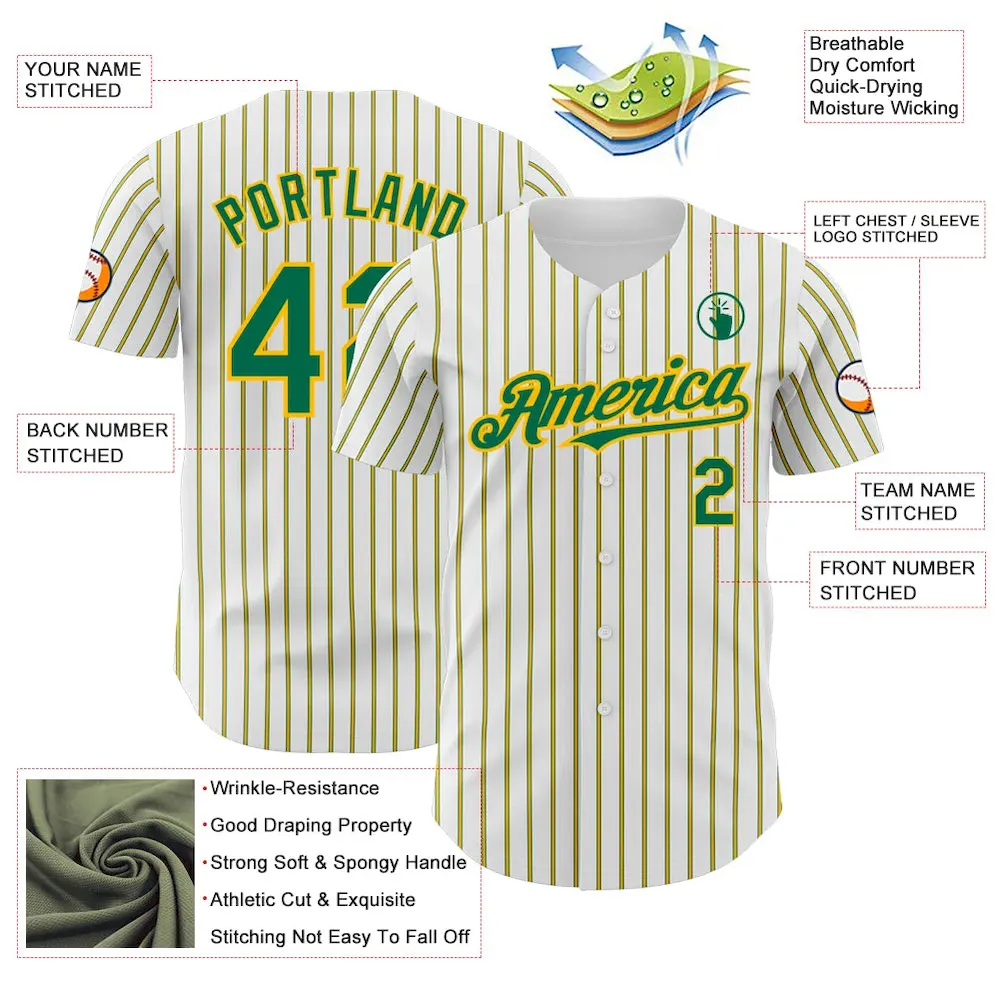 Custom White (Kelly Green Gold Pinstripe) Kelly Green-Gold Authentic Baseball Jersey