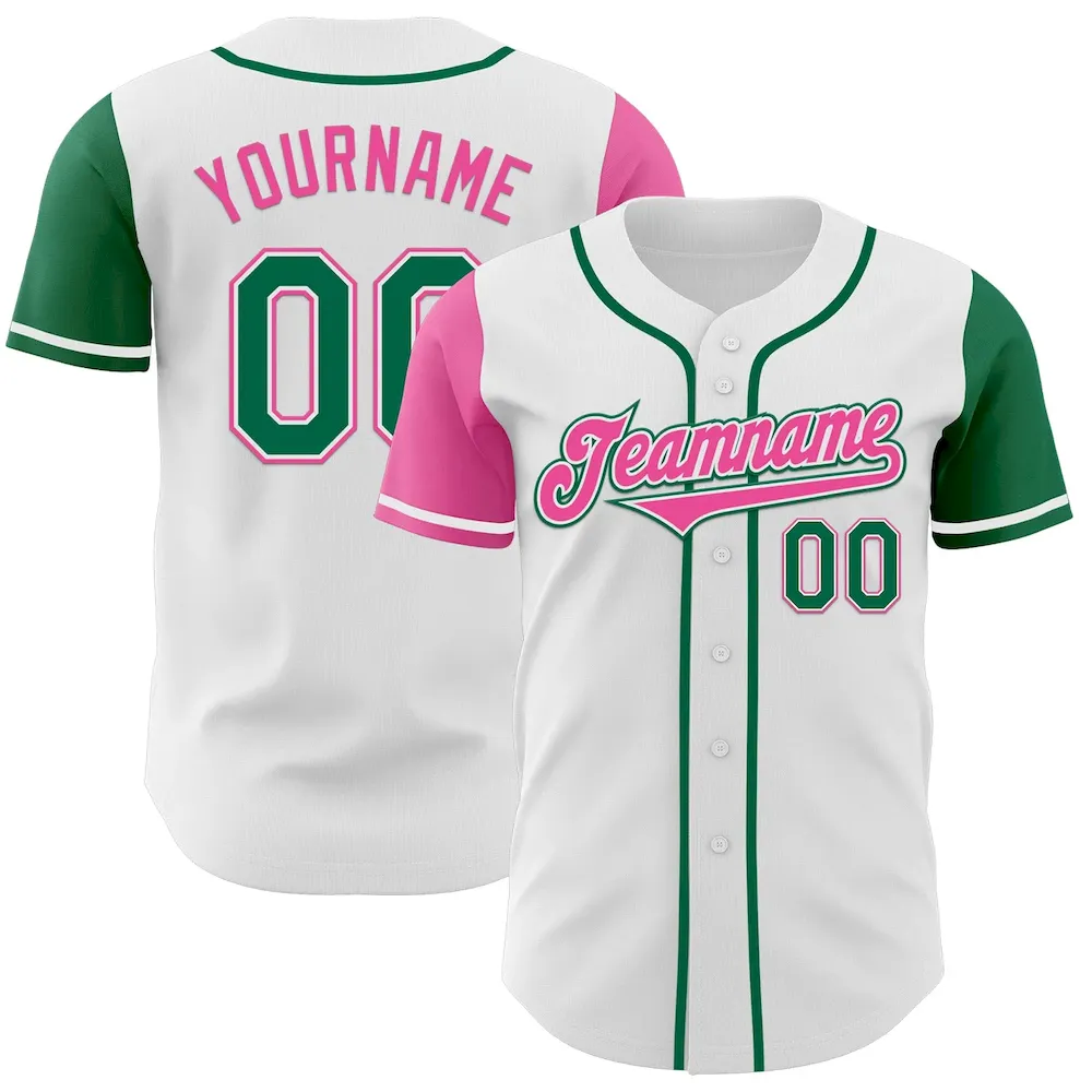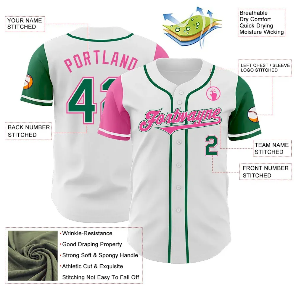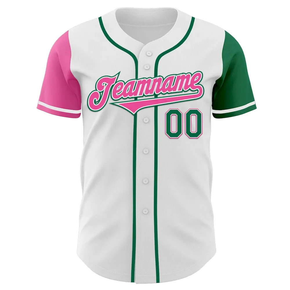 Custom White Kelly Green-Pink Authentic Two Tone Baseball Jersey