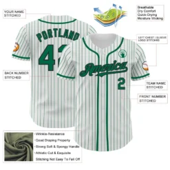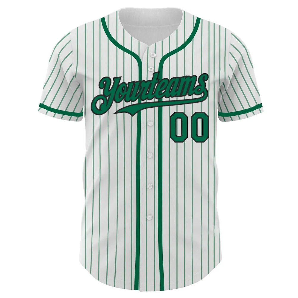 Custom White Kelly Green Pinstripe Black Authentic Baseball Jersey