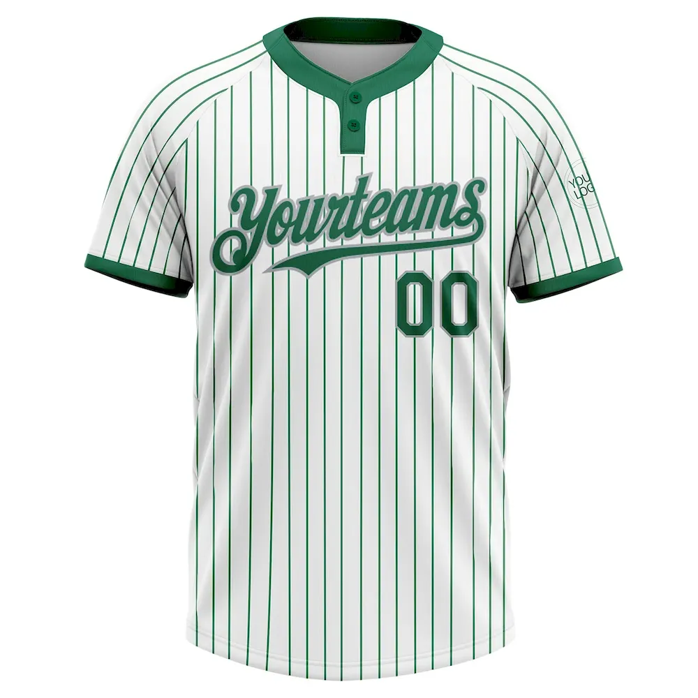 Custom White Kelly Green Pinstripe Gray Two-Button Unisex Softball Jersey