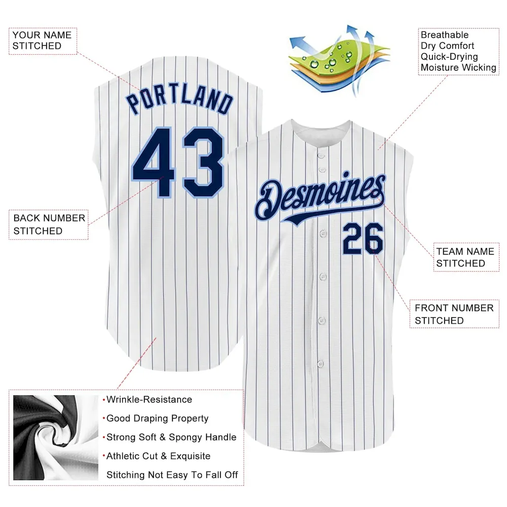 Custom White Navy Pinstripe Light Blue Authentic Sleeveless Baseball Jersey