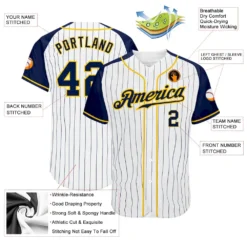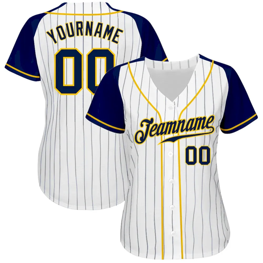 Custom White Navy Pinstripe Navy-Gold Authentic Raglan Sleeves Baseball Jersey
