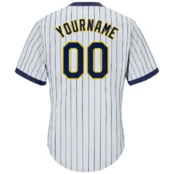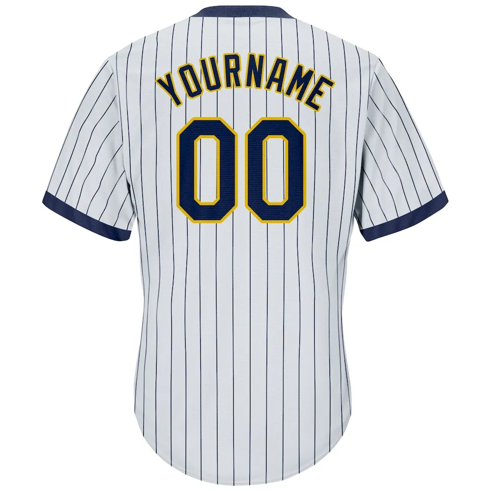 Custom White Navy Pinstripe Navy-Gold Authentic Throwback Rib-Knit Baseball Jersey Shirt