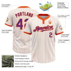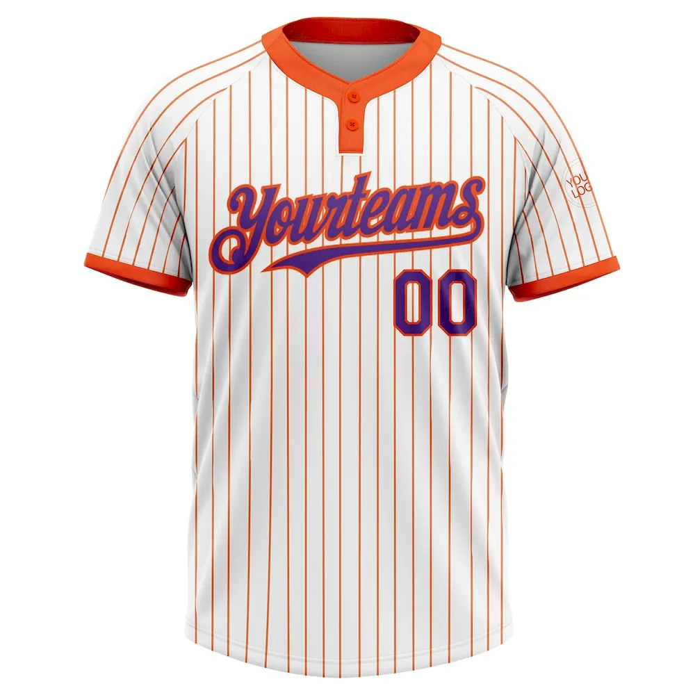 Custom White Orange Pinstripe Purple Two-Button Unisex Softball Jersey