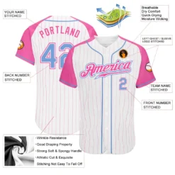Custom White Pink Pinstripe Light Blue-Pink Authentic Raglan Sleeves Baseball Jersey