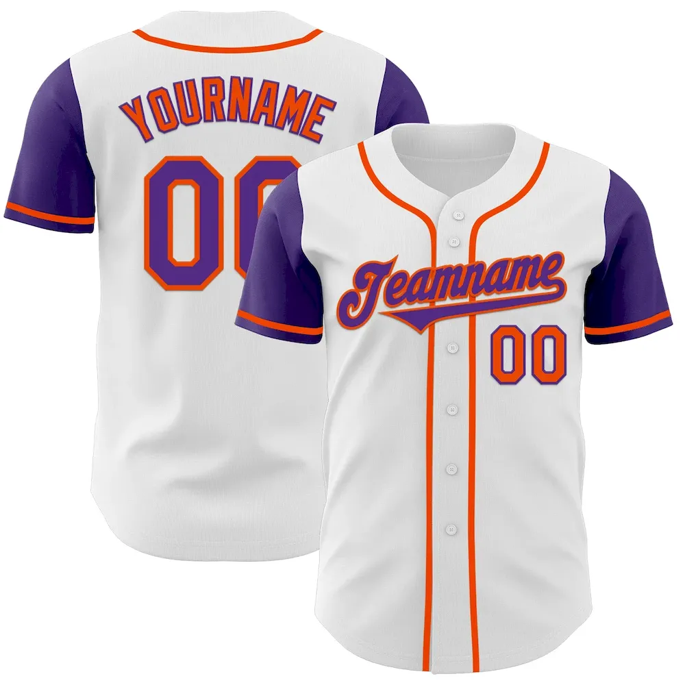 Custom White Purple-Orange Authentic Two Tone Baseball Jersey