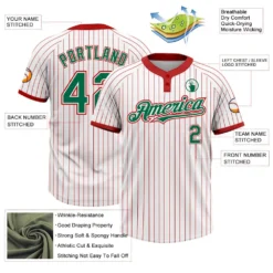 Custom White Red Pinstripe Kelly Green Two-Button Unisex Softball Jersey