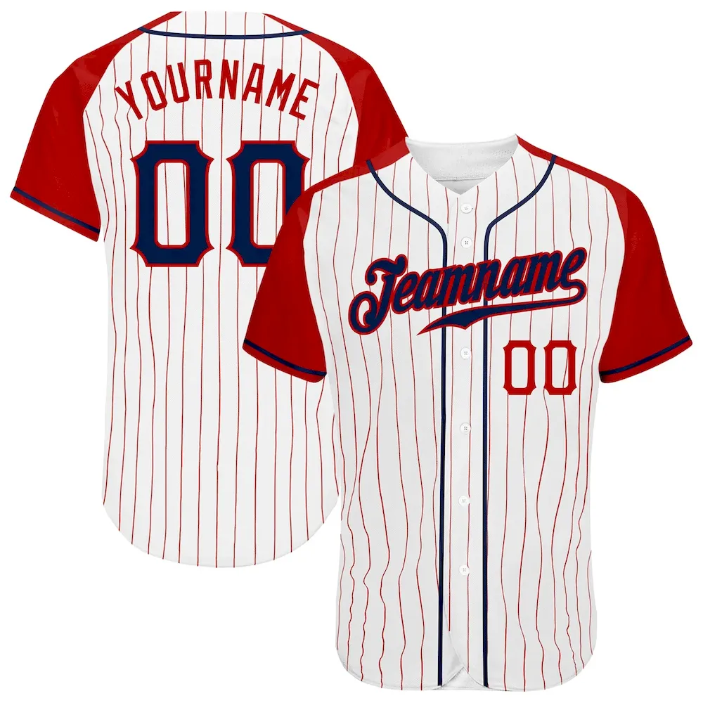 Custom White Red Pinstripe Navy-Red Authentic Raglan Sleeves Baseball Jersey