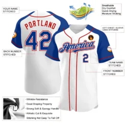 Custom White Royal-Red Authentic Raglan Sleeves Baseball Jersey