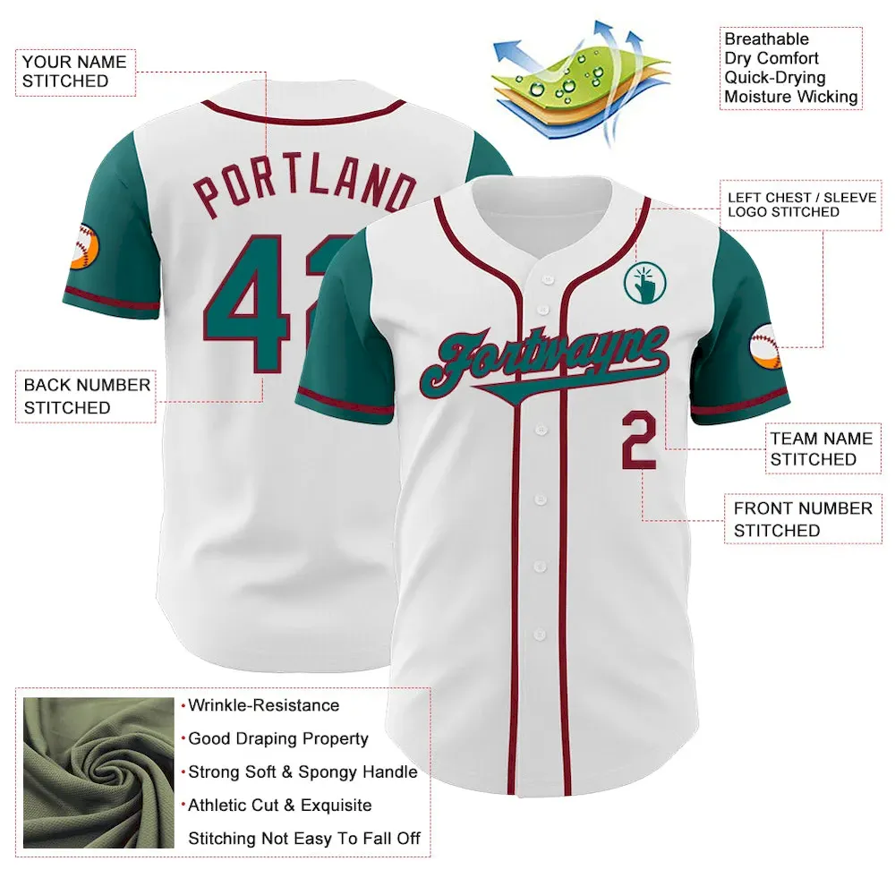 Custom White Teal-Crimson Authentic Two Tone Baseball Jersey
