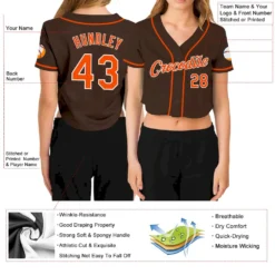 Custom Women’s Brown Orange-White V-Neck Cropped Baseball Jersey