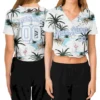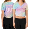 Custom Women’s Graffiti Pattern White-Light Blue Multi Colored Mixed Media Art 3D V-Neck Cropped Baseball Jersey