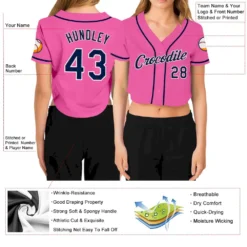 Custom Women’s Pink Navy-White V-Neck Cropped Baseball Jersey